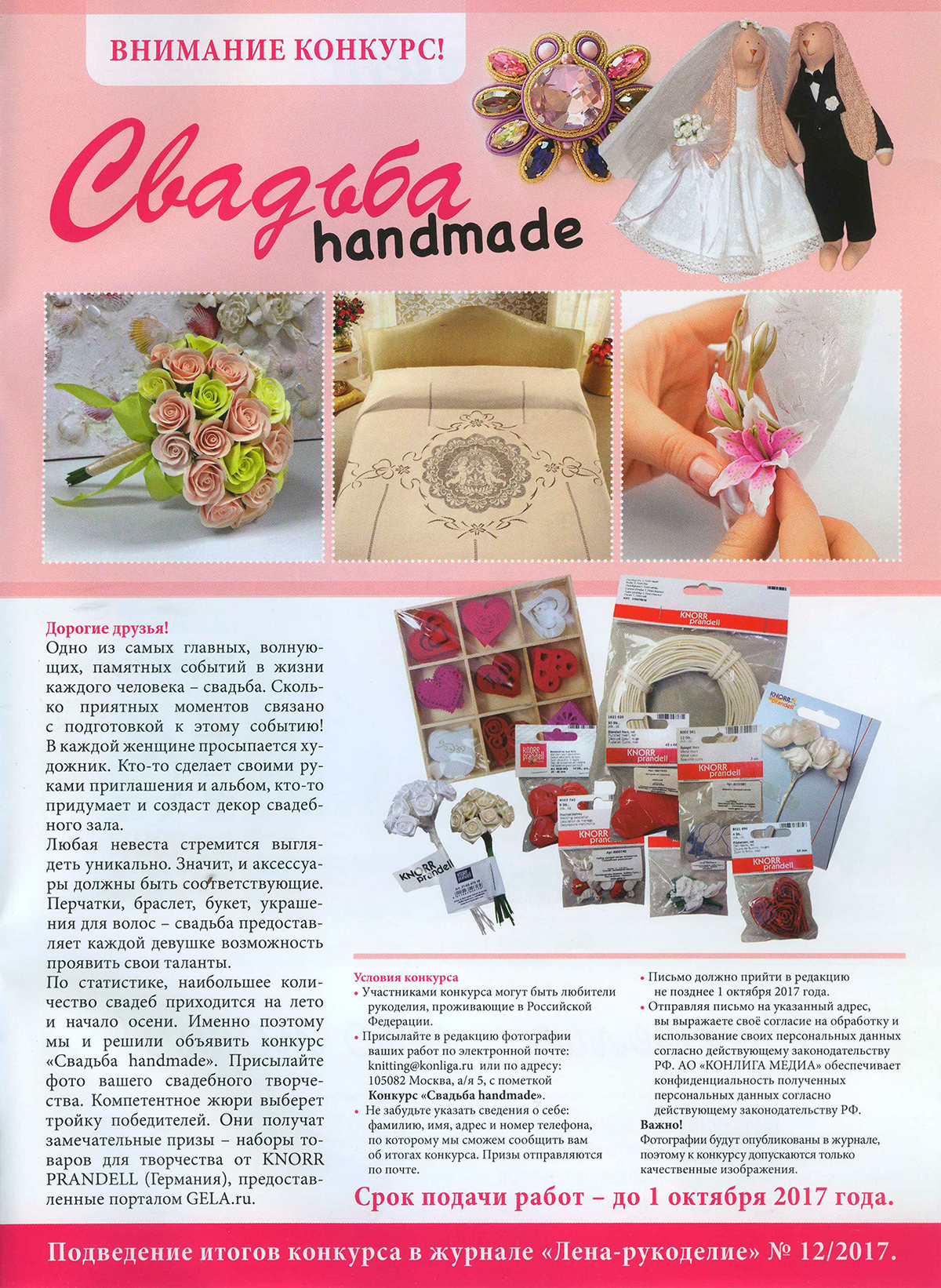Рекламные модули с новинками Heyda (Германия), Knorr Prandell (Германия) и мастер-классом "Тильда на качелях" опубликован в журнале ЛЕНА РУКОДЕЛИЯ 6/2017