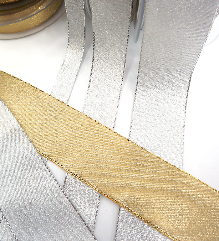 SAFISA имеет в своем ассортименте металлизированные ленты от 7 мм до 65 мм шириной в серебряном, золотом и бронзовом вариантах. Ленты упакованы в пластиковых бобинах по 15 м или 25 м. В магазине можно приобрести нужную длину «на отрез».