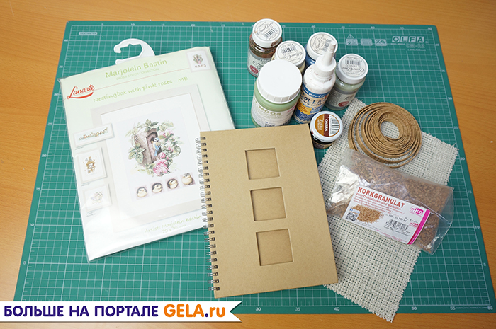 Шаг 3. Слегка смешиваем краски для домашнего декора на меловой основе "Home Deco" арт. KAH06, арт. KAH05, арт. KAH011 и прокрашиваем свободные места обложки сухой жесткой кистью, создавая эффект потертости.