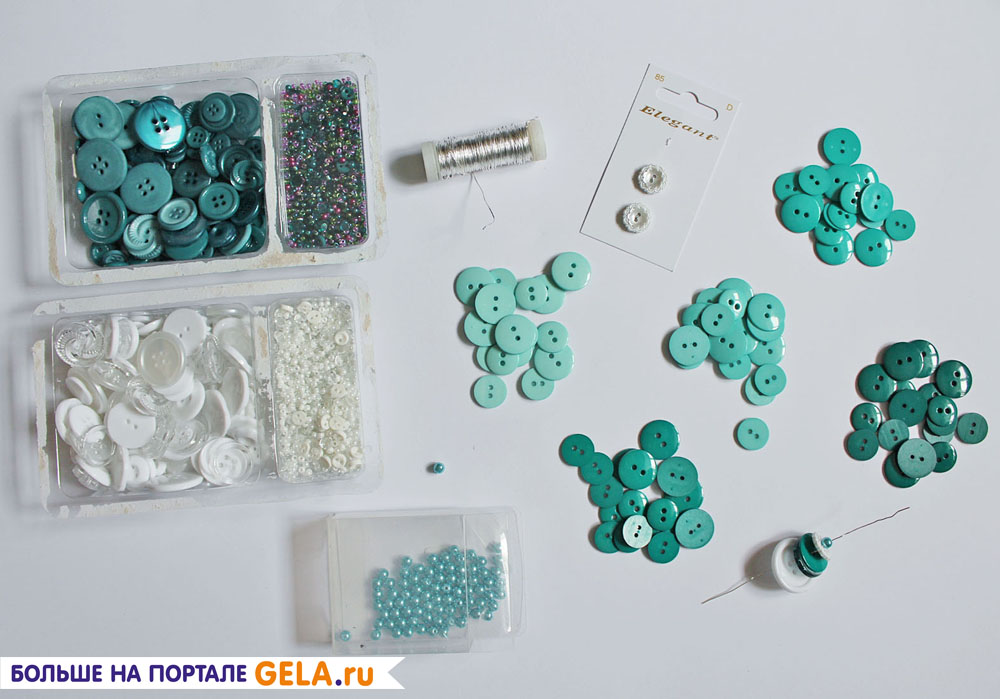 Яркие пуговки (таки как из серии LaMode и FlowerGarden) лучше держать отдельно, так как декорирование букета начнется именно с них.