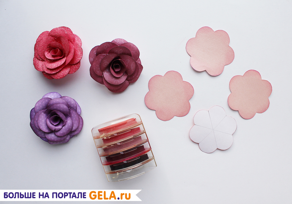 13. Делаем розы разных размеров. Выбираем яркую, разноцветную бумагу, тонируем края и заднюю сторону! Для одной чашки понадобятся от 8 до 11 роз.