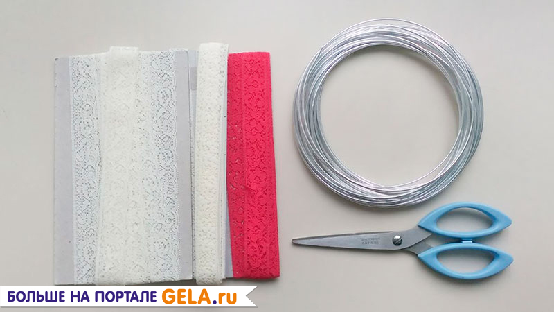 Обматываем кружевом заготовку из проволоки. Количество слоев обмотки регулируем по желанию (скрываем проволоку полностью или оставляем пробелы).
