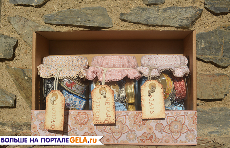 А в самих баночках будем хранить ленточки и тесемки. Это очень красиво!