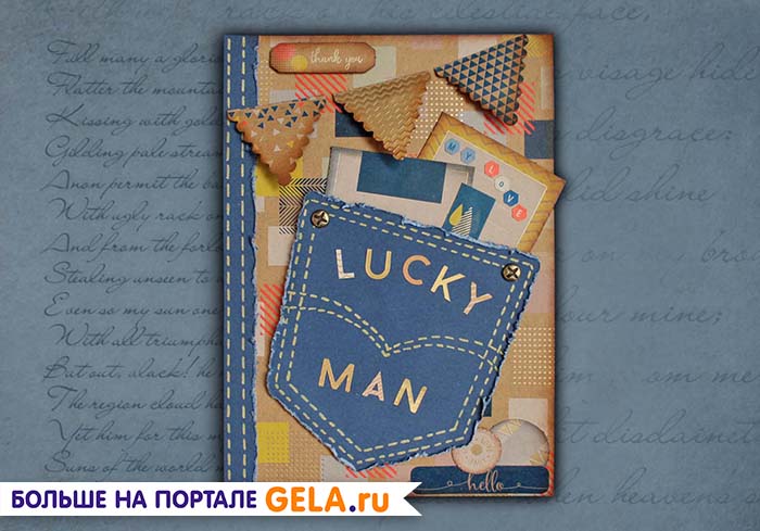 Шаг 2. Выбираем понравившийся лист из набора бумаги Geometric Kraft, обрезаем его по размеру открытки и приклеиваем на лицевую часть.