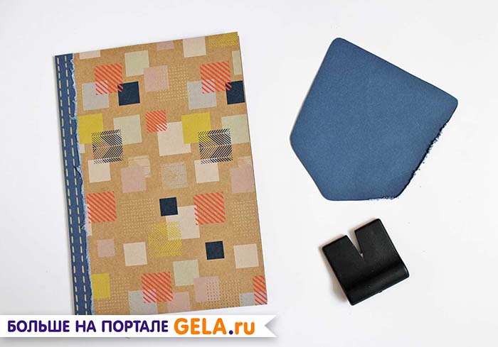 Шаг 5,6,7. Из ранее выбранного картона синего цвета вырезаем кармашек. Инструментом для состаренного края проходим по всему периметру кармашка несколько раз.
