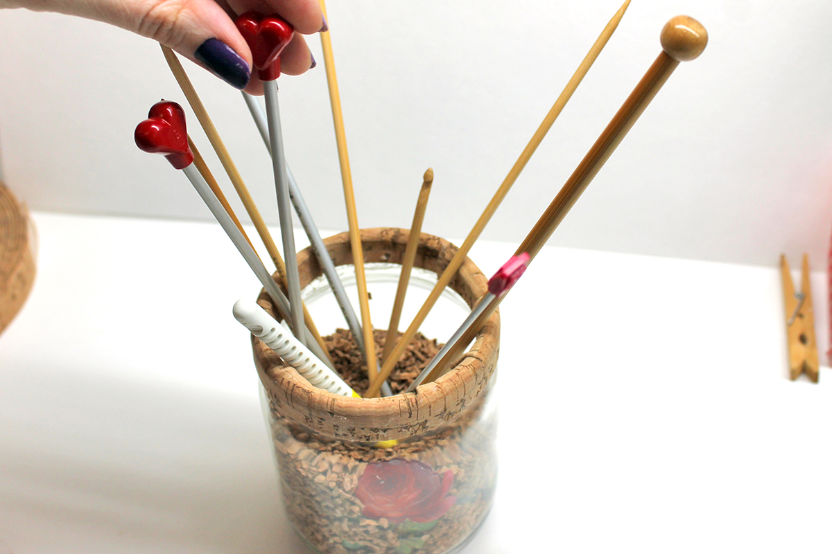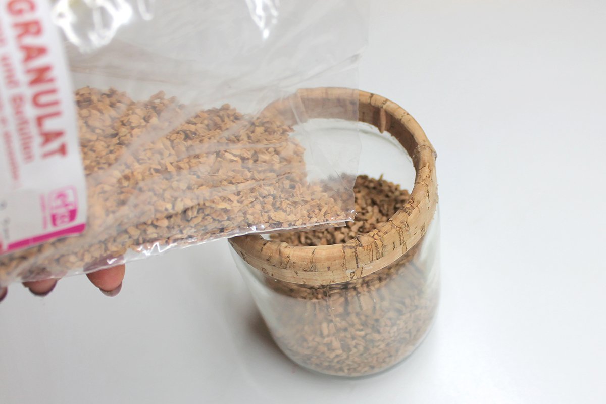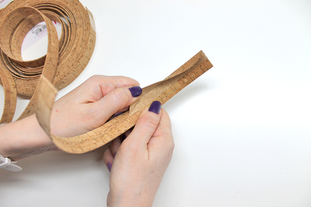 1. Замеряем длину окружности банки. Отрезаем косую бейку из пробковой ткани.