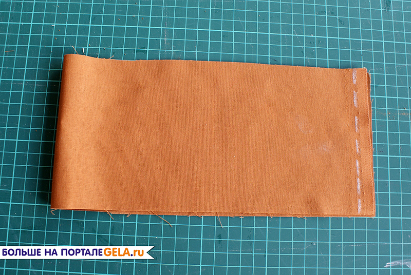 Ткань складываем пополам, прокладываем строчку в 1 см от края, швы разутюживаем.