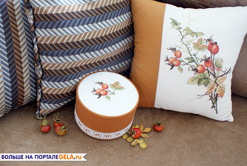 - вышивка для декорирования крышки (у меня – фрагмент дизайна «Осенний шиповник» от «Марьи Искусницы»);