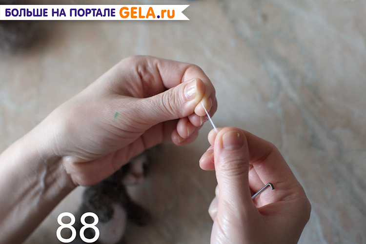 Шаг 39. Приваливаем тонкой иглой к ушкам.