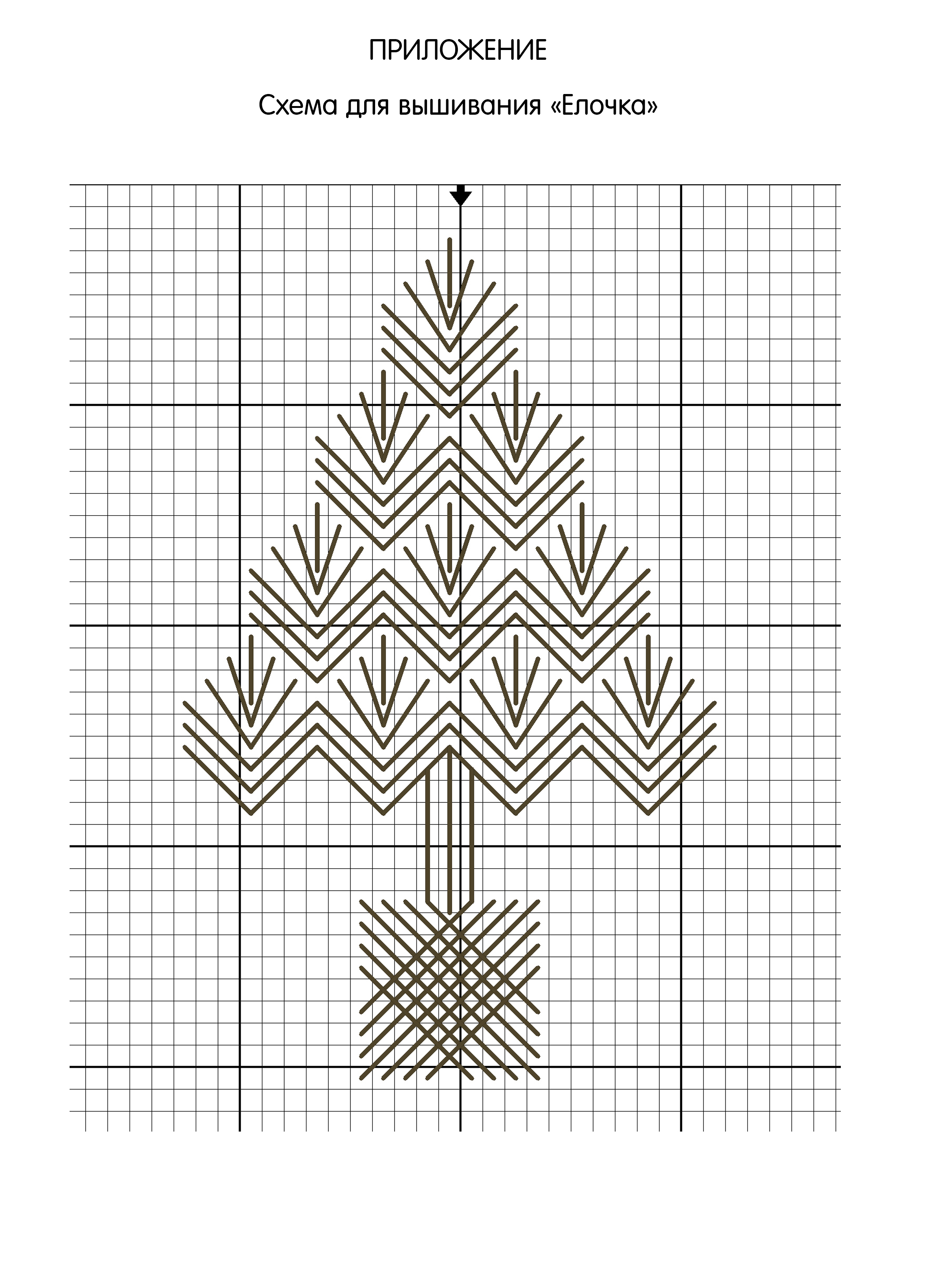 2. Вышиваем сюжет. Схема "Елочка" в ПРИЛОЖЕНИИ. Обращаем внимание на заднюю сторону - она должна быть аналогично лицевой - без перетяжек нитей и узелков. Прячем перетяжки под стежки.