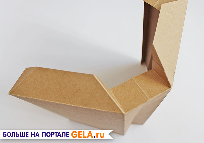 Шаг 5. Начинаем сборку пакета. Загибаем бумагу по разметке… Склеиваем.