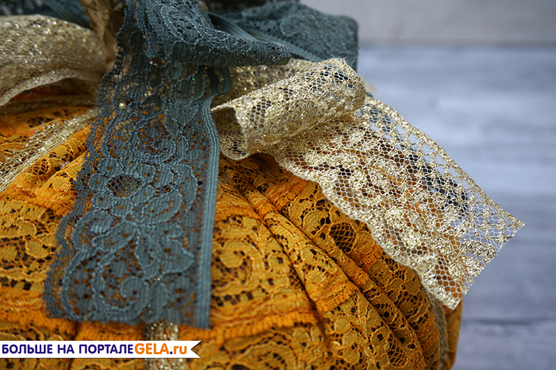 6. Из золотого и зеленого кружева нарезаем 9шт по 25см.