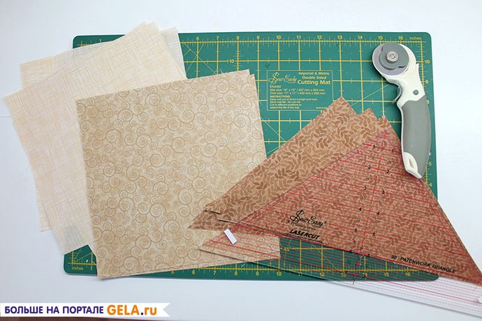 2. Согласно эскизу нарежьте квадраты со стороной 30 см и полосы для бордюра шириной 15 см. Также подготовьте полотно для задника.