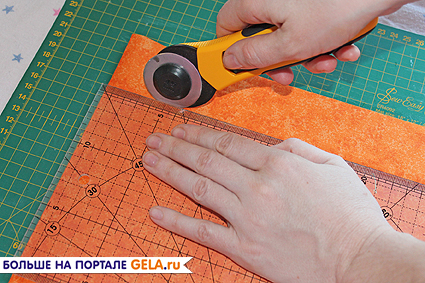 1. С помощью раскроечного дискового ножа и линейки нарежьте из ткани полосы размером 4,5 х 25 см.