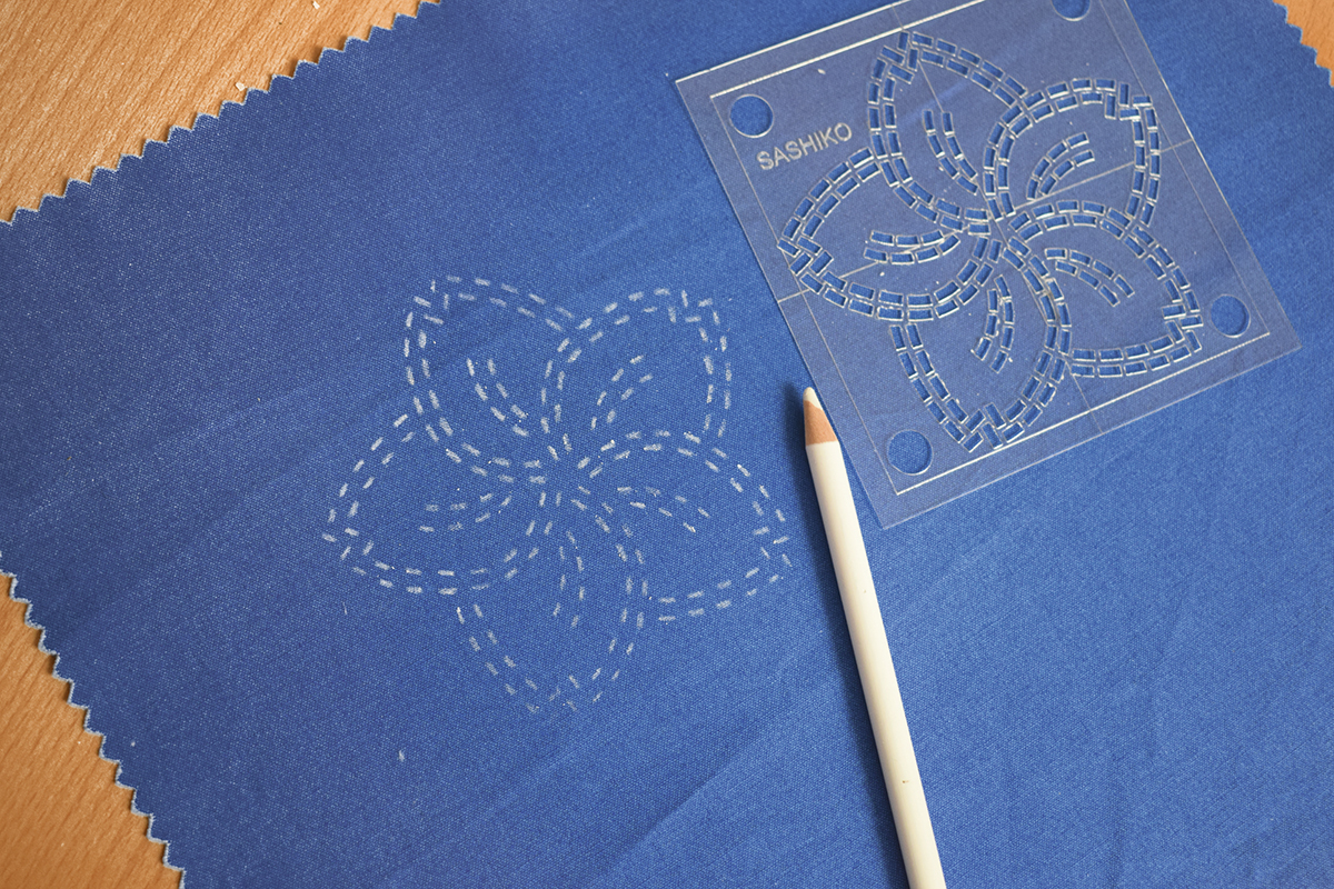 Фоновую ткань для техники САШИКО принято подбирать в темно-синих оттенках, матовой фактуры. Головоломка или загадка этого шитья состоит в том, чтобы не хаотично вышивать фигуры, а продвигаться постепенно от одного элемента к другому, только периодически заправляя нить в иглу.