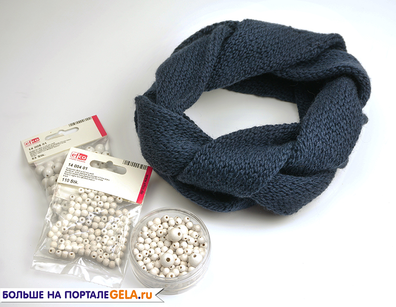 10. Пришиваем бусины на снуд швейными нитями "Mersifil" от AMANN GROUP METTLER под цвет пряжи.