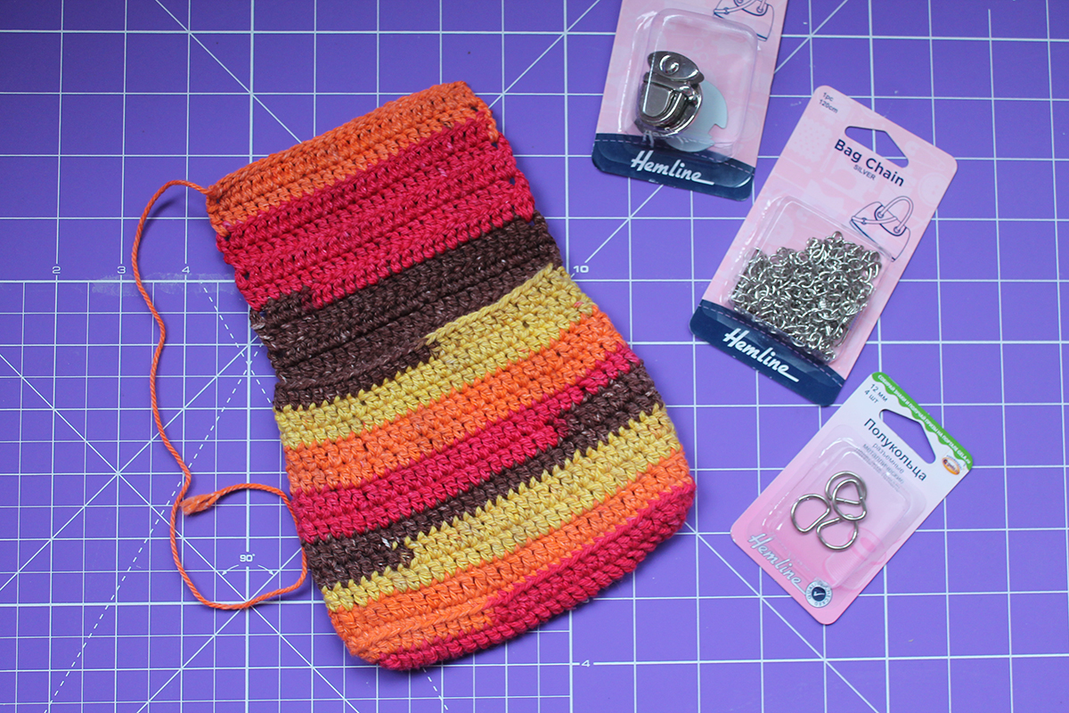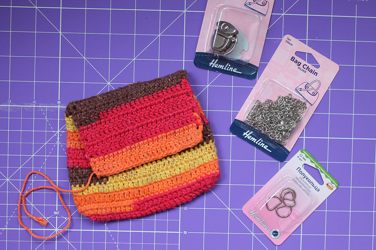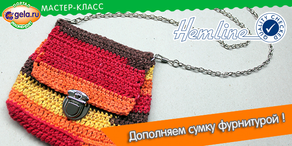 Небольшую вязанную сумочку дополним металлической фурнитурой. Серия такой фурнитуры есть в ассортименте HEMLINE !