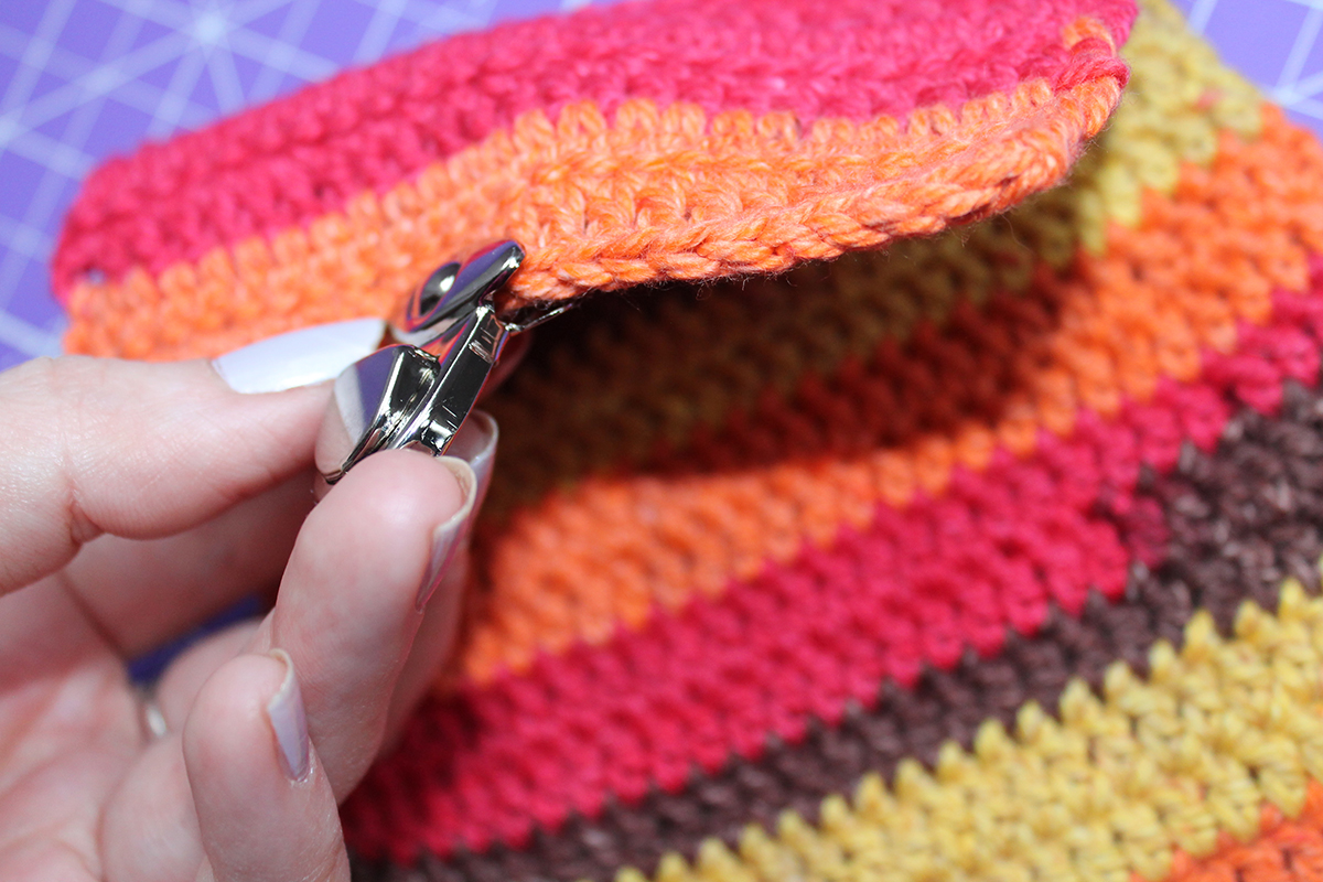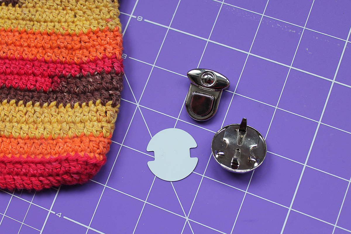 У сумочки есть верхняя крышечка, потому сделаем портфельную застежку.