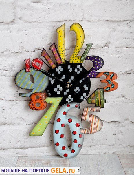 Раскрасьте цифры и центр. Нанесите фоновый цвет а затем тонкими кисточками нарисуйте полоски, зигзаги и разные цветочки, горошки и прочие красоты.