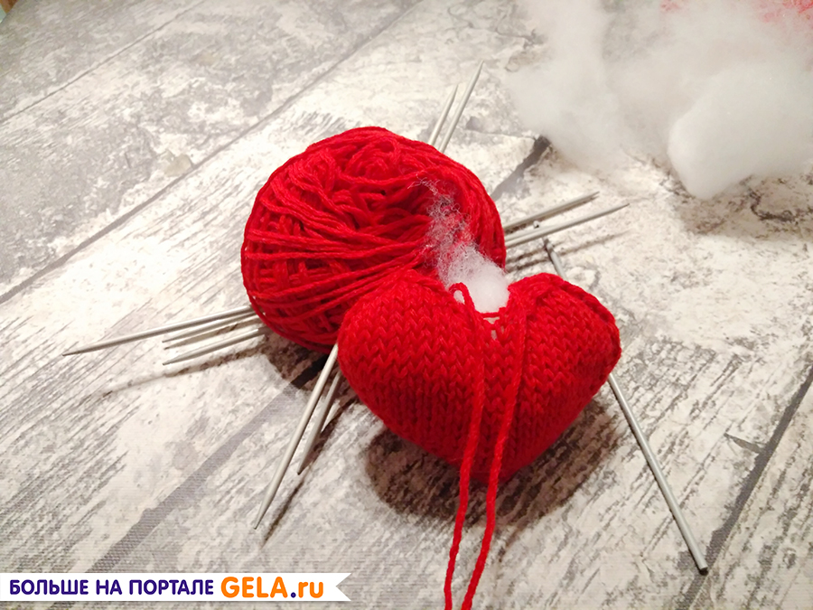 Шаг 8. Через отверстие наверху сердечка набиваем синтепухом или другим наполнителем.