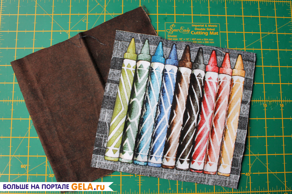21. Шьем игольницу. Вырезаем две детали из ткани с красками. Благодаря четкому делению на рисунке шить очень легко!