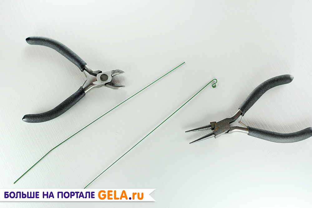 Шаг 8. Берем проволоку, режем пополам, и прои помощи круглогубцев делаем петельку с колечком на одном конце проволоки.