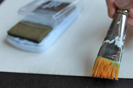 Затонируте все края открытки с помощью штемпельной подушки и широкой кисти