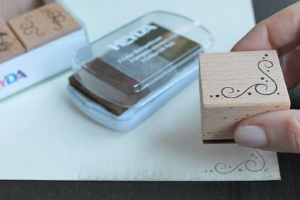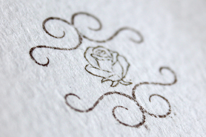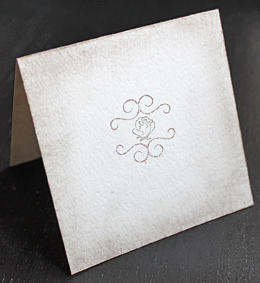 Внутренняя часть открытки: Оформите поздравительную часть открытки штампиками с розой и вензелями.