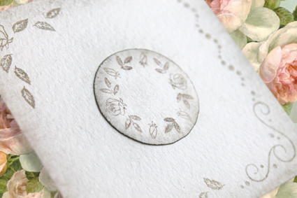 Центральный элемент. На отдельном листе поставьте штамп с рисунком венка из роз.