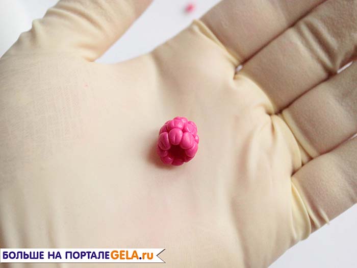 Очень аккуратно, стараясь не помять нашу ягодку, снимаем ее со стека. Запекаем в печке (духовке) при температуре, указанной на упаковке глины.