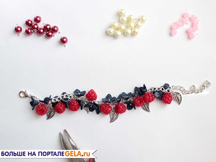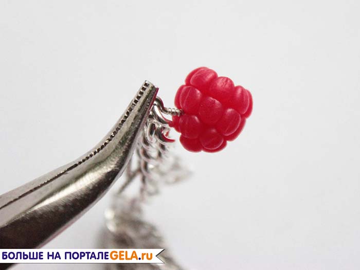 На цепочку крепим штифты с резьбой, на них накручиваем ягоды малины.