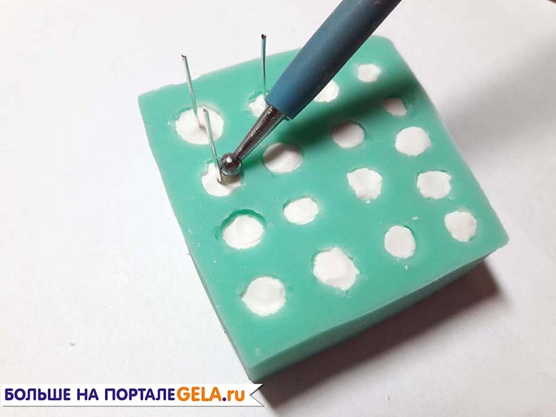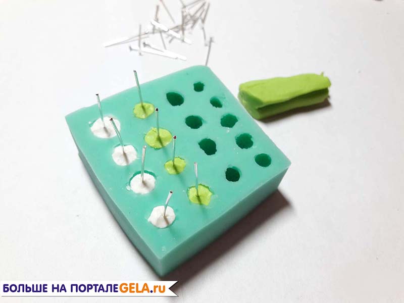 После того, как все отверстия для ягод заполнены, вставляем в них пины (гвоздики), аккуратно "заглаживаем" неровности стеком с шариком. Запекаем при температуре, указанной на упаковке полимерной глины.