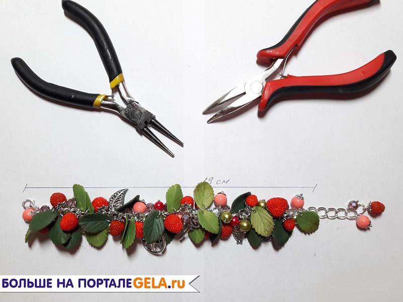Кончик браслета (можно оставить несколько пустых звеньев в качестве "удлинителя") также декорируем ягодами и бусинами.