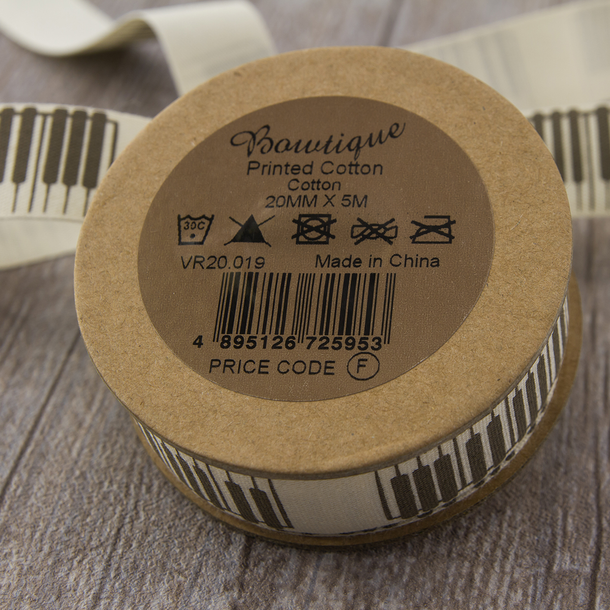 Лента хлопковая на картонной мини-катушке "Клавиши". Арт VR20.019