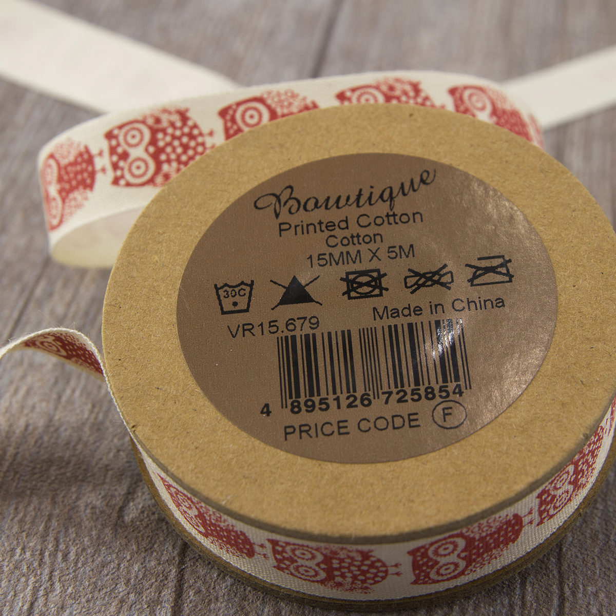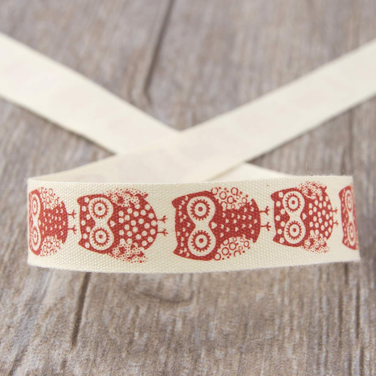 Лента хлопковая на картонной мини-катушке "Совы". Арт VR15.679