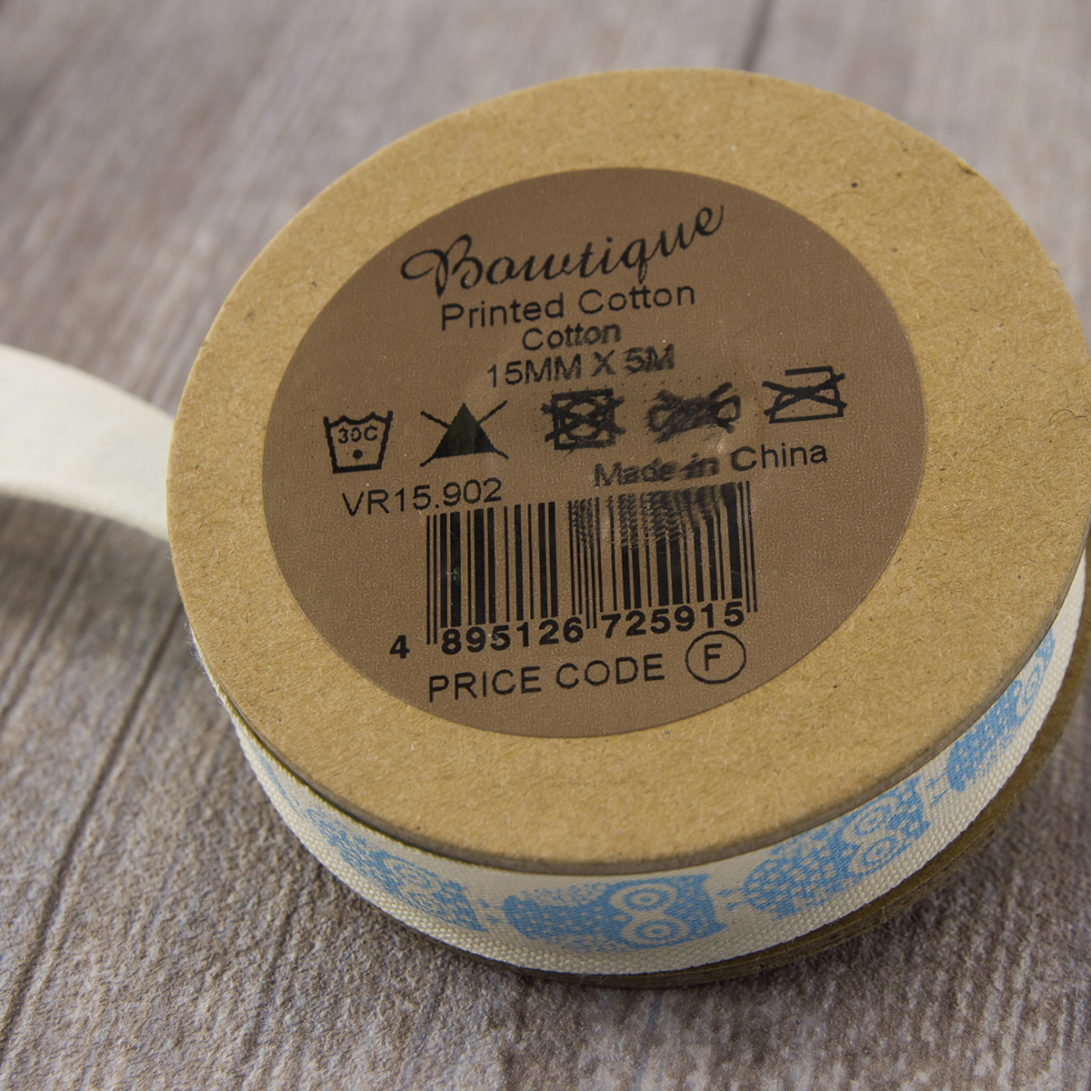 Лента хлопковая на картонной мини-катушке "Совы". Арт VR15.902