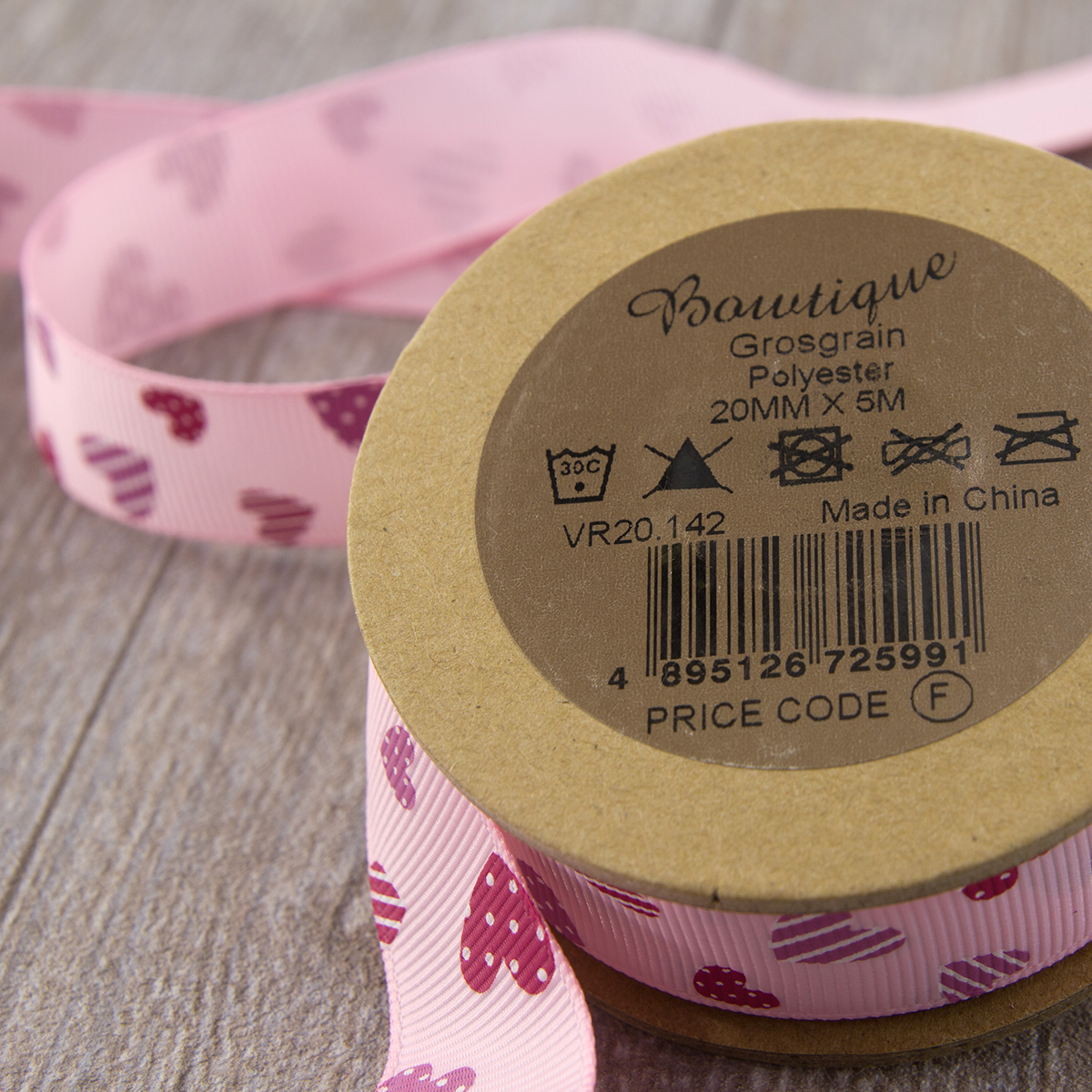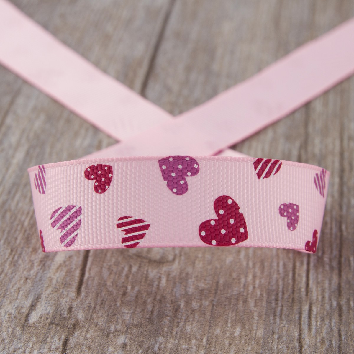 Лента репсовая на картонной мини-катушке "Сердечки". Арт VR20.142